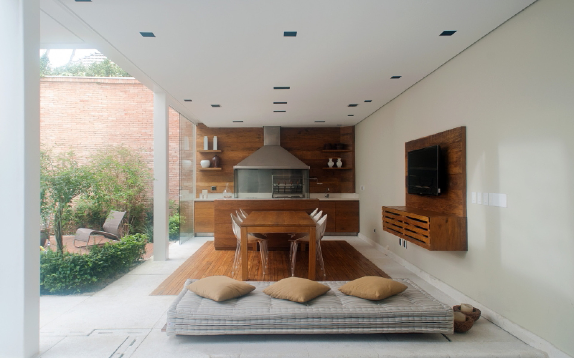 A residência localizada no Jardim Europa conta com um projeto que contempla a integração entre área externa e interna, valorizando os ambientes sociais. As linhas retas são marcantes e a atenção aos detalhes e acabamentos foi fundamental para atingir um padrão de construção de altíssima qualidade.